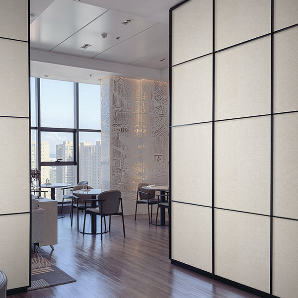 A gridwork of tufted, diminutive diamonds creates an allover small print effect in this felted acoustic fabric with ambient noise-reducing properties.