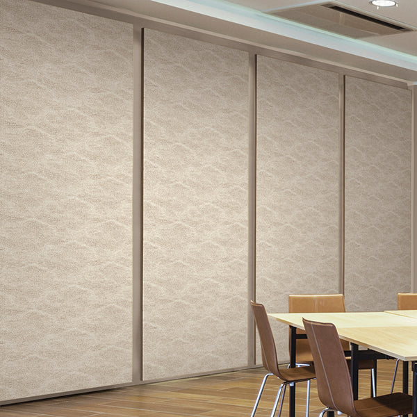 The rhythm of undulating waves brings natural inspiration and sustainability to this sound-reducing embossed textile wallcovering made from 100% recycled polyester fiber.