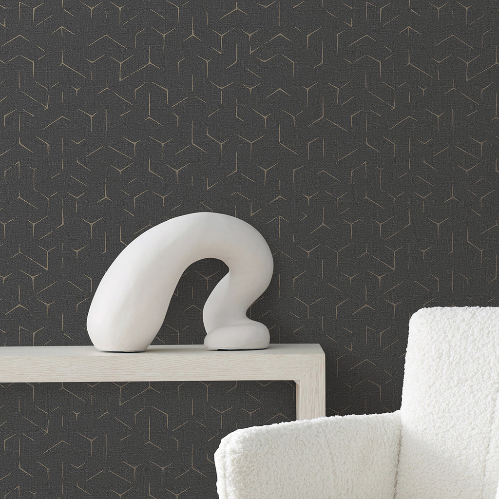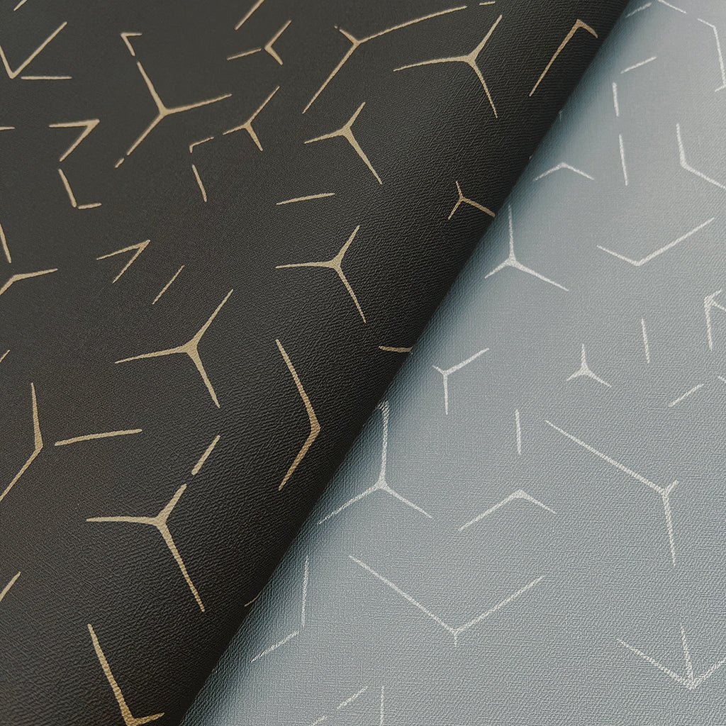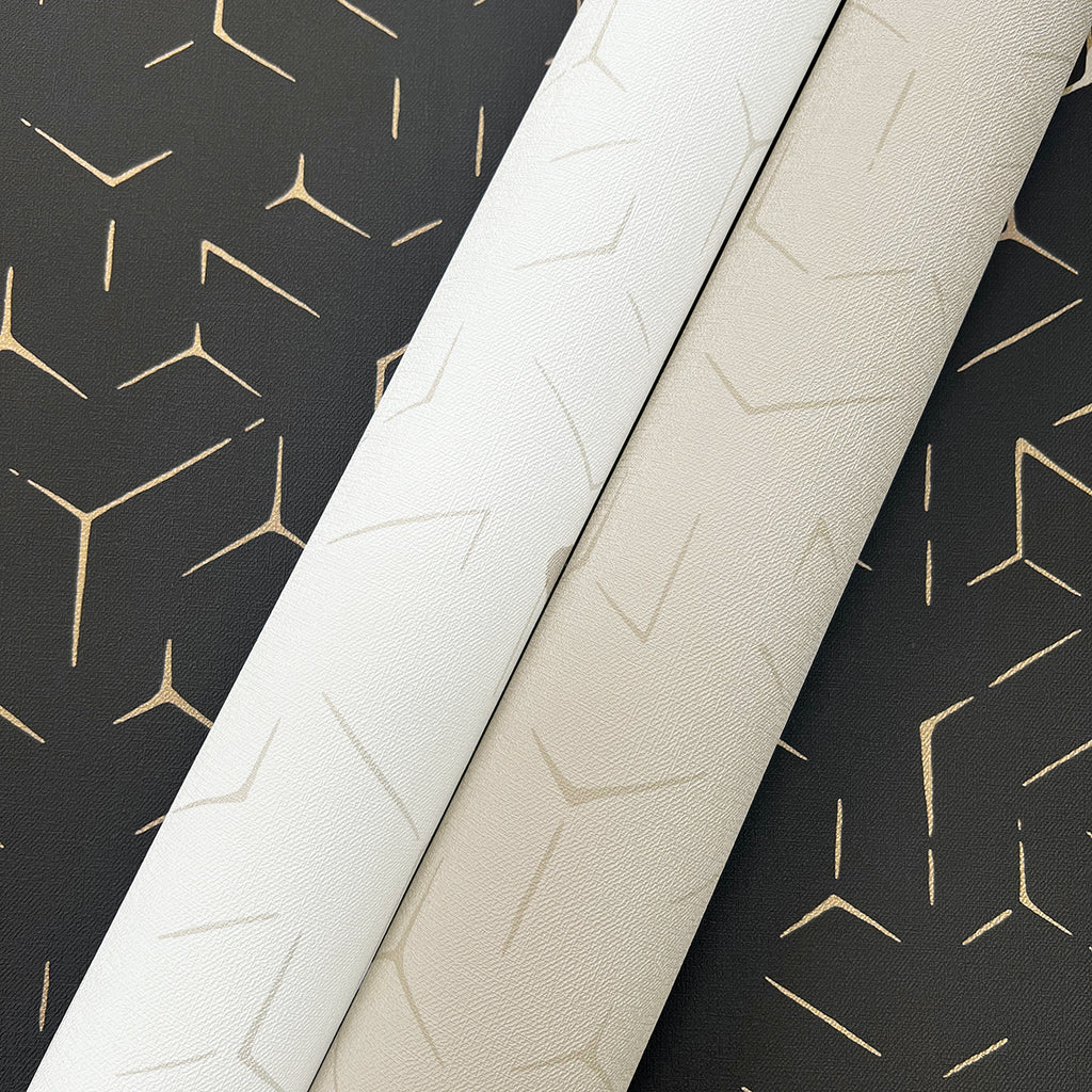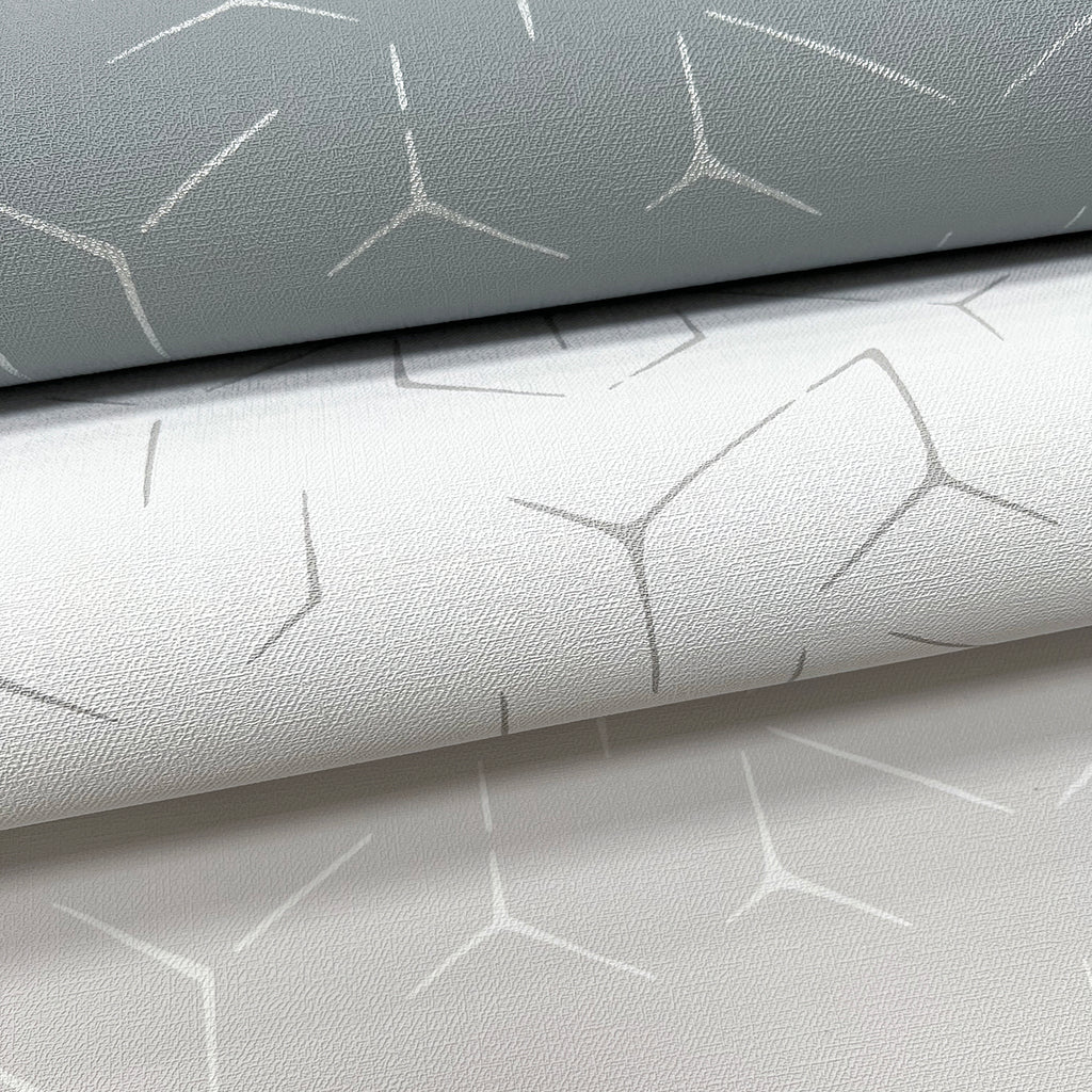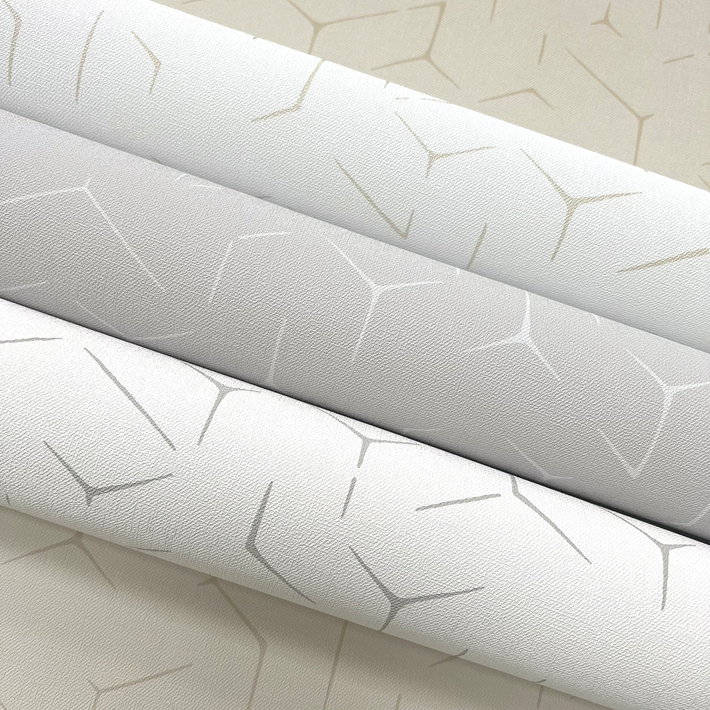 The palette's texture of breezy coastal linen balances the clean edges of a deconstructed hexagonal geometric. Rendered in either a matte finish, or with hints of glamorous metallic, contemporary aesthetics incorporate affluence and a casual expectation of luxury.
